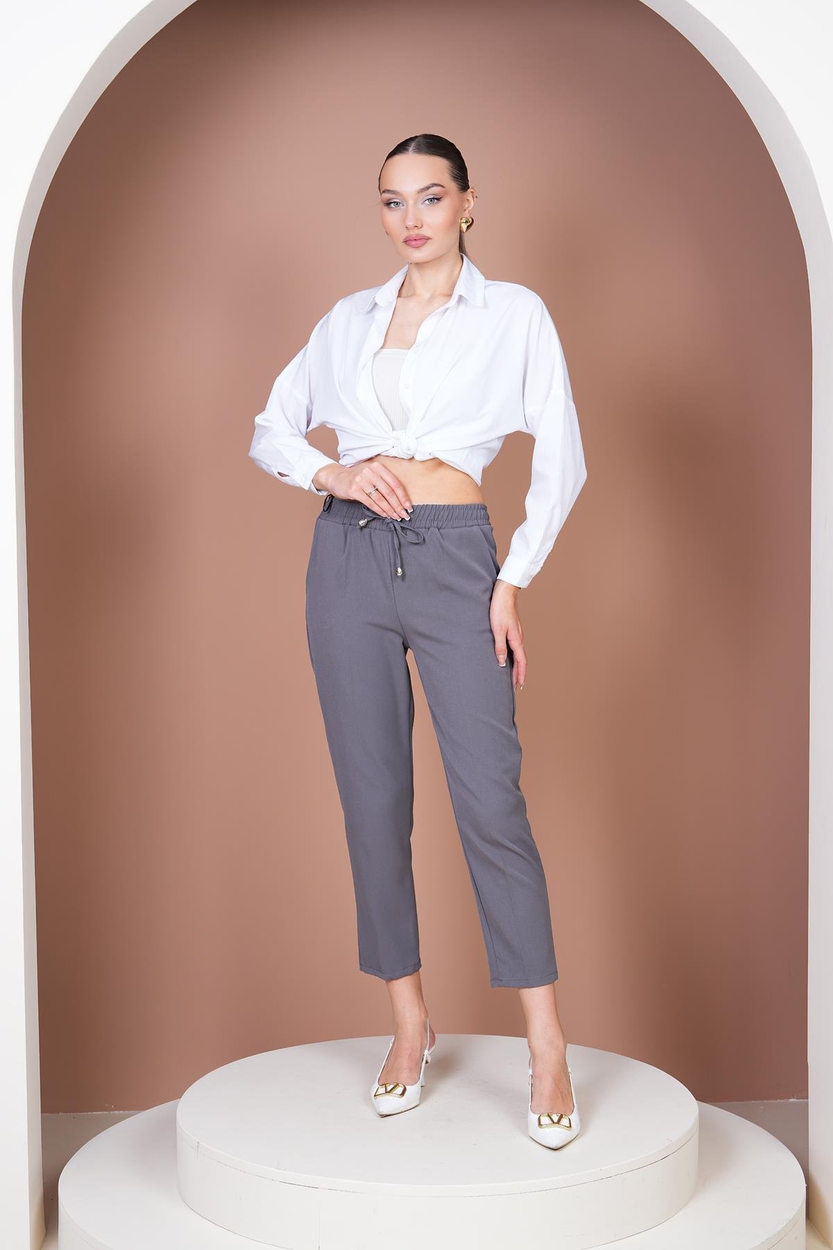 Beli Lastikli Havuç Pantalon-Antrasit Gri