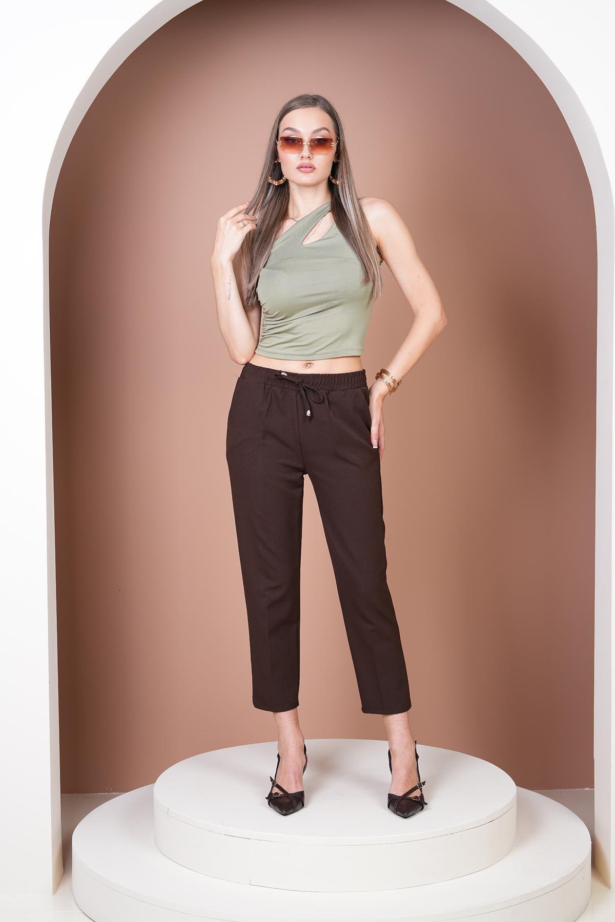 Beli Lastikli Havuç Pantalon-Kahverengi